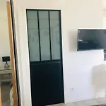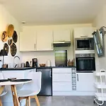 O apartamento inclui chaleira elétrica, frigorífico e aparelhos de cozinha. Demora cerca de 15 minutos de carro do aeroporto em Deauville St. Gatien para acomodação.